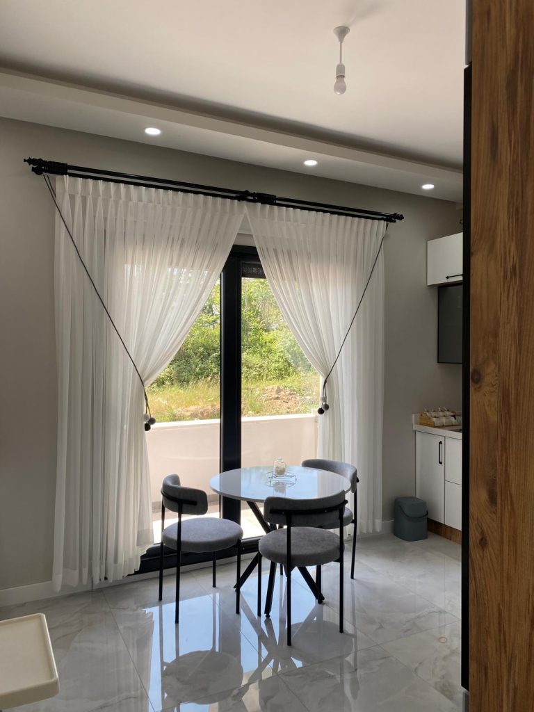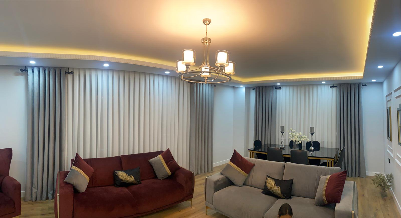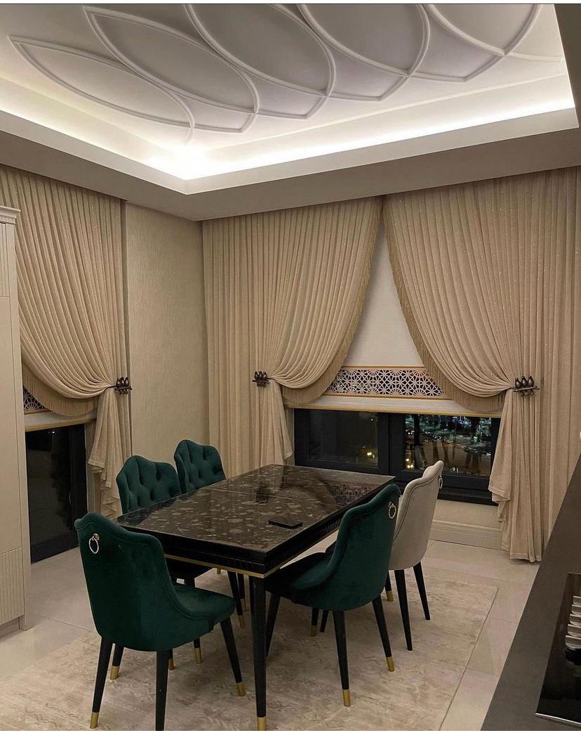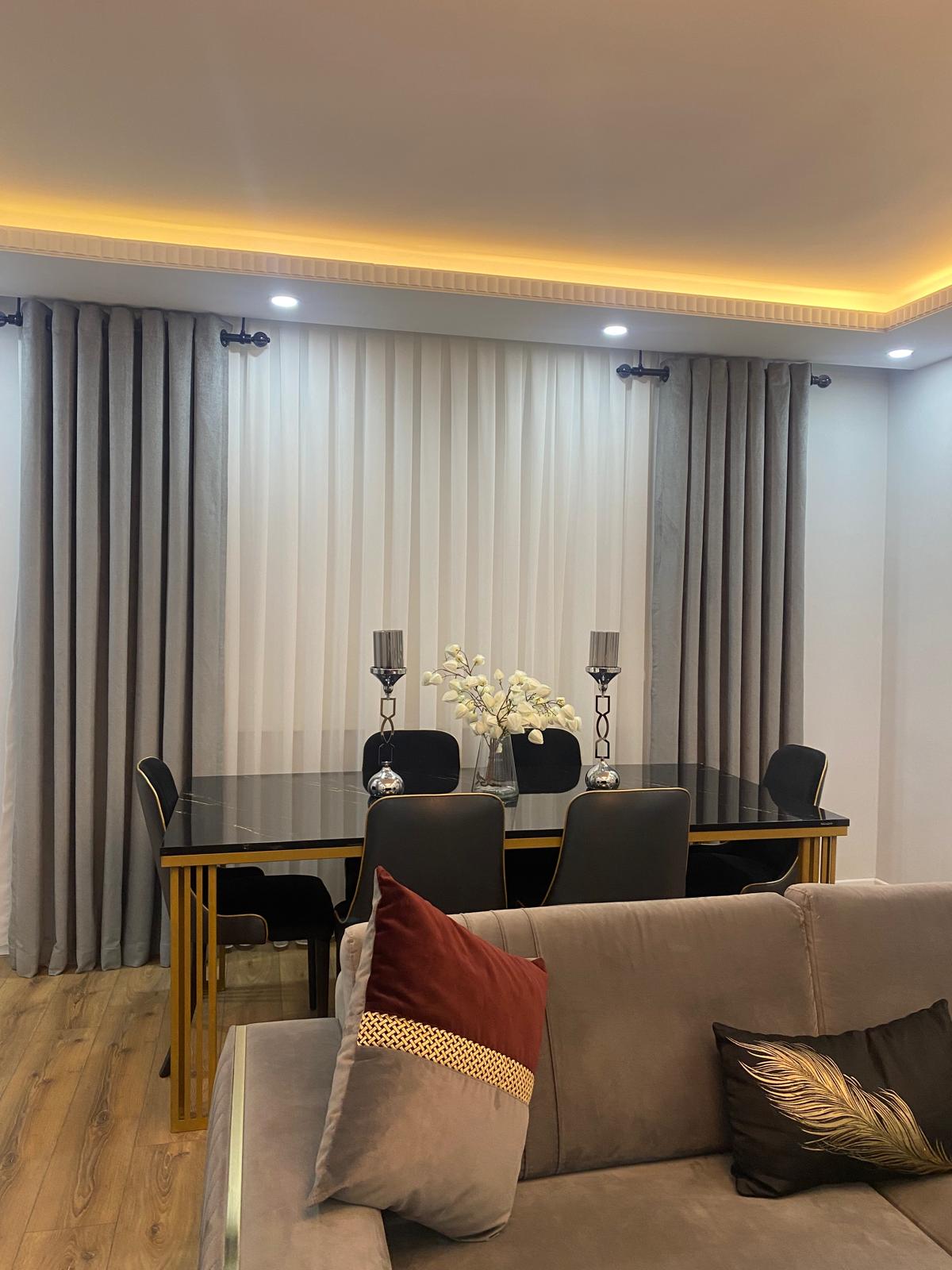 Fon Perdeler: Tül perdelerle kombinlenerek hem dekoratif bir şıklık hem de gece kullanımında mahremiyet sunar.
